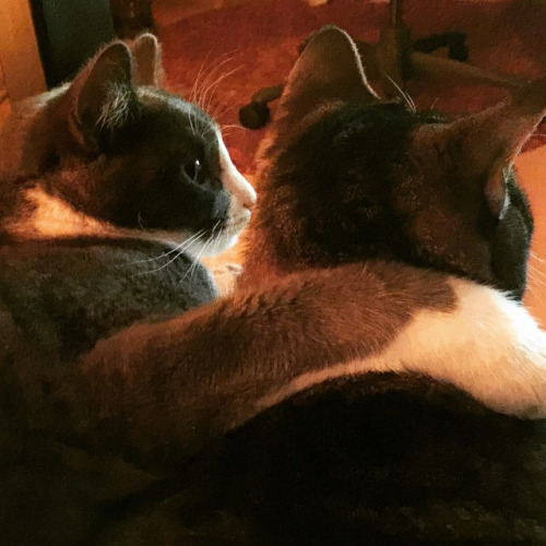 Scout and Lulu in their usual TV-watching positions. Scout is...