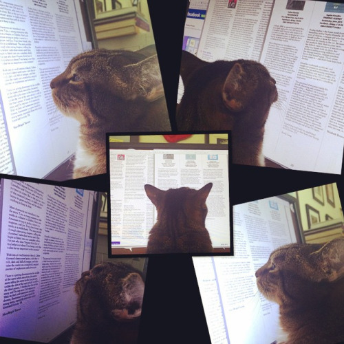 Lulu loves helping me write. I stare at one monitor and she stares at the other (here she is reading UK reviews of All the Bright Places). This goes on for a very long time, usually until she gets bored and decides to sit on my lap with her head thrown back against the keyboard.