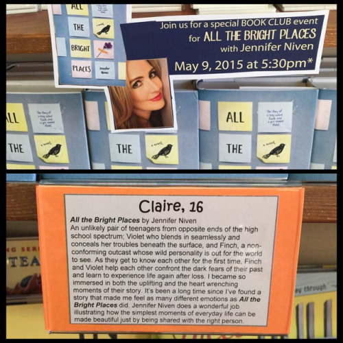 Angie from Children’s Book World led the discussion of All the Bright Places with the Teen Book Council. And it was so. Much. Fun.