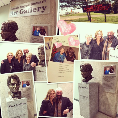 Tonight my mom’s friends and colleagues gathered at Carl Sandburg College to celebrate her life. Our friend Lonnie Stewart, sculptor extraordinaire, dedicated a bust of Sandburg in Mom’s honor, and the college surprised him by renaming the art gallery in his honor.