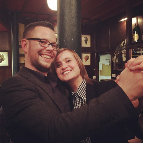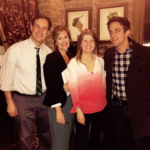 It’s me! With David Levithan, Sally Green, and BJ Novak at the Penguin Children’s ‘Stars of 2015’ Bookseller Dinner. (!!!!!) There are no words.