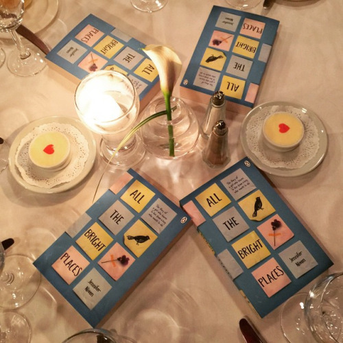 Each of the four tables at tonight’s event featured one of the books— here’s the (super lovely) All the Bright Places table!