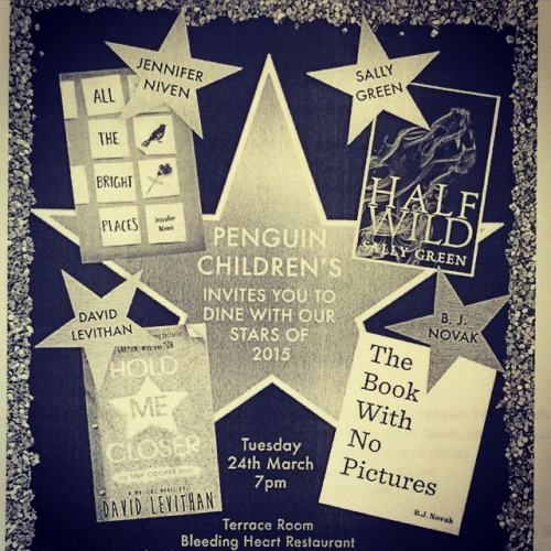 The book and I had such a lovely time tonight at the Penguin Children’s ‘Stars of 2015’ Bookseller Dinner!