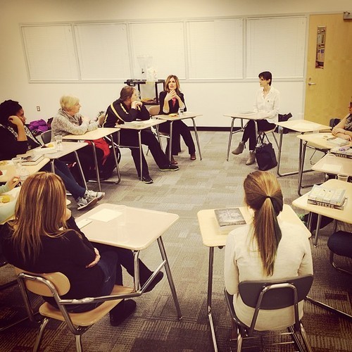 Talking with the amazing Matea Valley High book club, whose members read sneak peeks of #allthebrightplaces and #seekerseries. Such thoughtful questions! @mateavalley @arwenelysdayton (at Matea Valley High School)