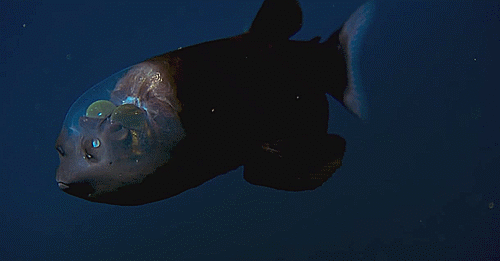 “Here in the Pacific, 200 metres down, we enter an alien world… This is barreleye a fish with a transparent head filled with jelly so that it can look up through its skull.” - Sir David Attenborough