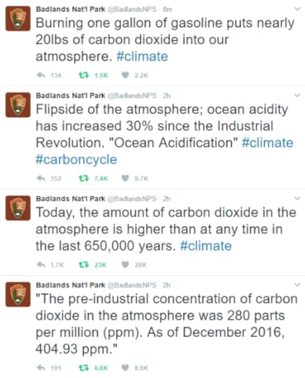 The official Badlands National Park twitter (@BadlandsNPS) is defying Trump’s gag-order by posting climate change statistics.