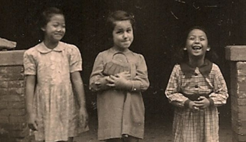 A young Jewish refugee with her Chinese playmates. Shanghai, China(x)