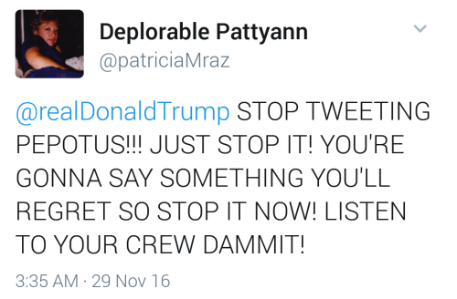 (there are A LOT a tweets like these from les deplorables miserables… I mean they REALLY want him to stop tweeting)