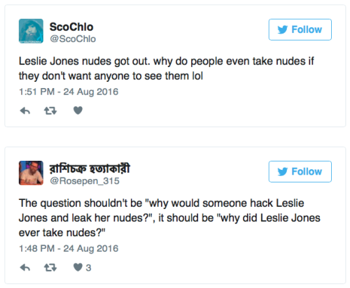 almost right on cue, people are now victim blaming Leslie Jones for having nude photos. butthat’s not even the worst of it: some skipped the “why” entirely and went straight to disturbing cruelty and objectification.
