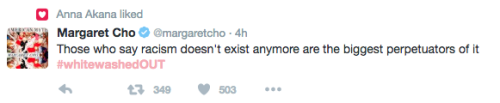About #whitewashedoutMay is Asian Pacific American Heritage Month. What better opportunity to highlight the dire state of Asian representation in Hollywood? In celebration, and protest, Nerds of Color, joined by such acts as Margaret Cho (the first Asian-American actor to get her own sitcom) has kicked off a month long campaign called #whitewashedout.