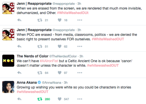 A few stand out tweets from The Nerds of Color #whitewashedOUT trend today.