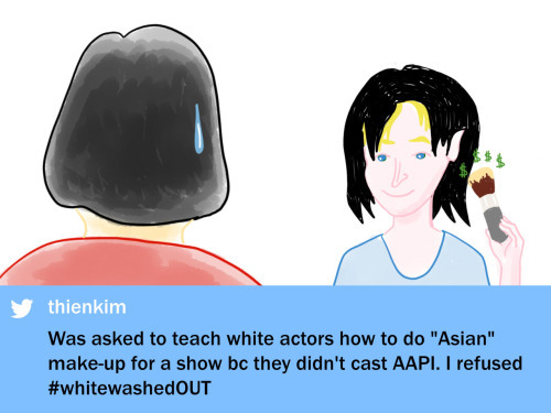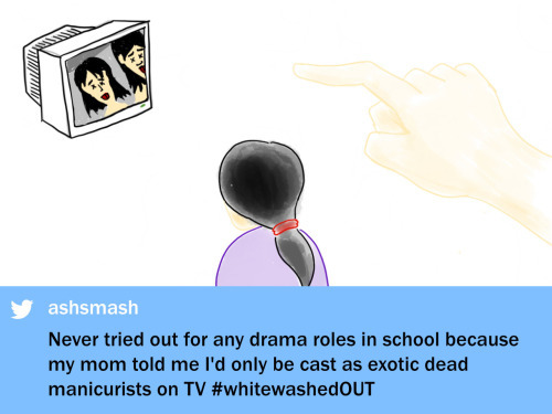 I illustrated some tweets from the recent #whitewashedOUT campaign that was sparked by the furor of Asian Americans as both Tilda Swindon and Scarlett Johansson were recently cast into Asian roles/as Asians. As Twitter Moments says: