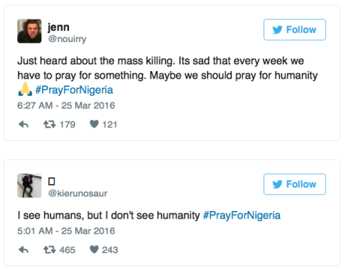 #PrayForNigeria highlights the double standard in the media coverage of terror attacksA wave of terrorist attacks in Nigeria over the past month and a half is sparking anger across social media this week. More than 160 people have died at the hands of terrorists since late January — and the media coverage has been sorely lacking, many claim.The disparity in media coverage of these attacks has been especially apparent this week.(Warning graphic images)