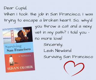 Trembling Hearts — Suzette Riddick A daring young woman crashes into the life of a disfigured recluse and his pooch. Can love be far behind? Valentino, Be Mine — Tina D.C. Hayes Sparks fly when two people who can’t stand each other wind up dog-sitting a rambunctious little Yorkie that needs a new home. Lost and Found — Jeanne Bannon Stuck with her ex’s puppy, a high school English teacher meets a new man but will a series of unfortunate events keep them apart? Surviving San Francisco — Susan Oloier A small town girl survives San Francisco after she hits a cat and falls for a handsome veterinarian.