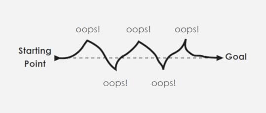 In his book Actualizations, Stewart Emery presents an excellent model for changing your direction in life. He learned it while seated on the flight deck of an airplane on the way to Honolulu. He noticed a console, which was identified by the pilot as the inertial guidance system. The purpose of the system was to get the plane within one thousand yards of the runway in Hawaii within five minutes of the estimated arrival time. Each time the plane strayed off course, the system corrected it. The pilot explained that they would arrive in Hawaii on time in spite of “having been in error 90 percent of the time.” Emery takes it from there, stating: “So the path from here to where we want to be starts with an error, which we correct, which becomes the next error, which we correct and that becomes the next error, which we correct. So the only time we are truly on course is that moment in the zigzag when we actually cross the true path.” From the analogy, we see that the trick in life is not to worry about making a wrong decision; it’s learning when to correct! My concept of the model looks like this: