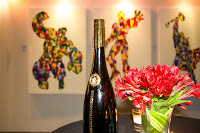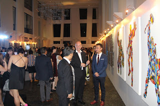 These ancients, too, played with light and outlines, created colorful stampedes of forms in motion. They told stories and celebrated color. Silhouettes fascinate me. They are both part of the thing they define and not part. Silhouettes are halos, as they are a two dimensional thing which describes a three dimensional object in a four dimensional world. Canvas is never plain. Not on a microscopic level and not in a spiritual sense. I don’t usually share such thoughts during shows or viewings. People don’t ask about it either, and perhaps I am secretly happy about this. My philosophy is not a secret I would guard like a magician would. There is no secret ingredient. Anyone can see what my paintings are all about and how they are made. It takes one second to get it, and yet, people keep looking, so I enjoy watching them explore my work as their eyes follow the intriguing black lines from silhouette to silhouette. It is all in their faces, when they understand the meaning of style and the possible story behind it. Then they smile - and so do I.