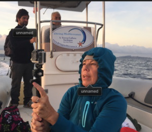 Our crew included Tomasso at the helm, Domenico, a local MD who came along as medical officer, and my wife, TI Coach Alice Laughlin, to take video and photos. All three prepared our hydration and feeds. As this would be a relatively brief swim–we anticipated between 4 and 5 hours–I brought only water, a banana and a few packs of energy gel.