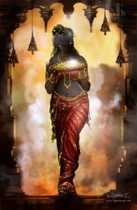 மலர்ந்த முகத்துடன் கட்டளையிடுவதும் பிறரின் மனத்தை மயக்கி, பணியச் செய்வதும் தன் பேரன்பால் பிறரைத் தன் காலடியிலேயே கிடத்திக்கொள்வதும் இளைய யாதவனின் பேராற்றல்தானே!.