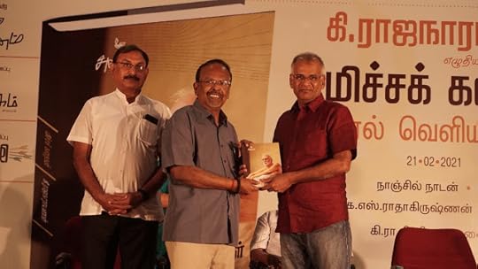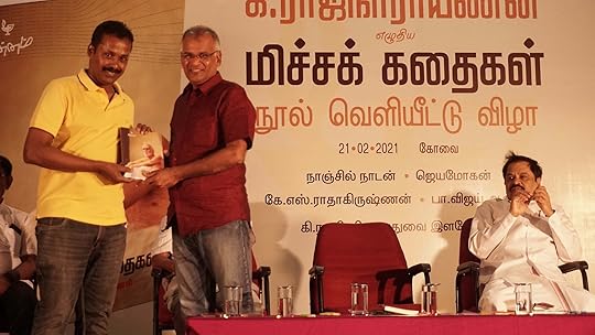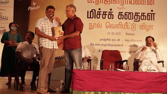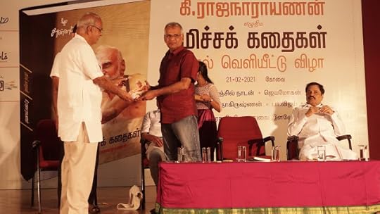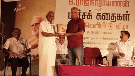 விழாவில் விஜய் ஆனந்த், கே.எஸ்.ராதாகிருஷ்ணன், நாஞ்சில்நாடன் ஆகியோர் சிறப்பாகப் பேசினார்கள். கி.ராவின் மகன் கி.ரா.பிரபியைச் சந்தித்தேன். கோவையின் முதன்மை மனிதர்கள் திரண்டிருந்த அவை. கி.ரா. நிகழ்ச்சியை செல்பேசியில் பார்த்துக்கொண்டிருப்பதாகச் சொன்னார்கள்.