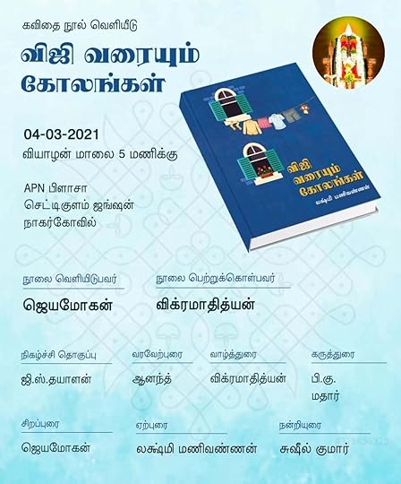 வரும் மார்ச் 4 அன்று நாகர்கோயிலில் லக்ஷ்மி மணிவண்ணனின் ’விஜி வரையும் கோலங்கள்’ நூல் வெளியீட்டு விழாவில் பேசுகிறேன்.
