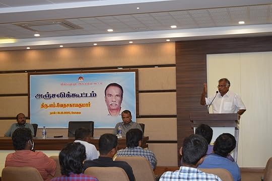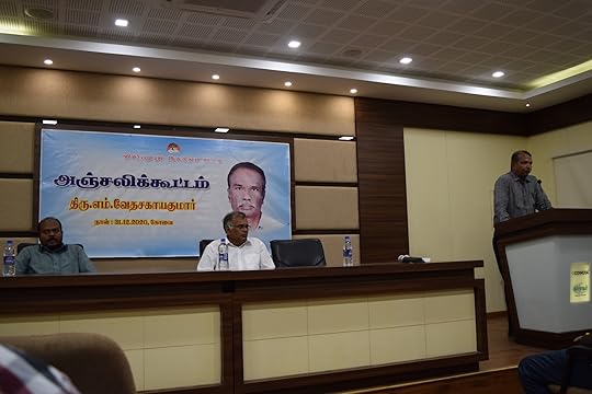 2020 ஆம் ஆண்டின் இறுதிநிகழ்ச்சி வேதசகாயகுமாருக்கான அஞ்சலி. கோவை ரேஸ்கோர்ஸில் உள்ள ஸிய்மா அமைப்பின் அழகிய சிறிய கூடத்தில் ஏற்பாடு செய்யப்பட்டிருந்தது. எண்பதுபேர் அமரலாம். ஆனால் நாற்பதுபேருக்கே அனுமதி. ஆகவே முன்னரே நிகழ்ச்சியை அறிவிக்கவில்லை. தளத்தில் மட்டும் ஓர் அறிவிப்பு போட்டோம். அணுக்கமான நண்பர்களே வந்திருந்தனர். 30 பேர்.