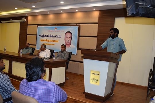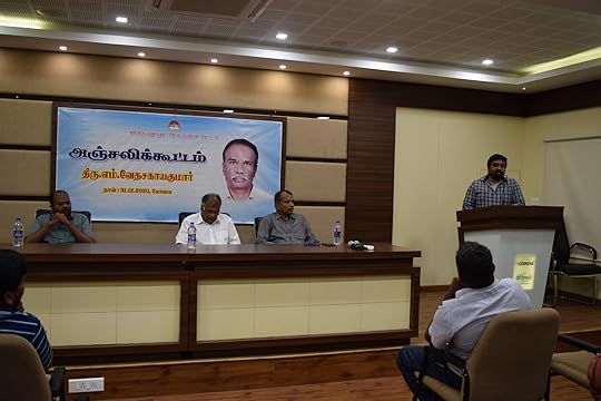 நண்பர்கள் ஈரோட்டில் இருந்தும் கோவையிலிருந்தும் வந்து கூடினர். அரங்கு நிறைந்துகொண்டிருந்தது. அதுவரை நண்பர்களைச் சந்திப்பது ஓர் உற்சாகத்தை அளித்துக்கொண்டிருந்தது. பலரைச் சந்தித்து ஓராண்டு கடந்துவிட்டது. ஆனால் அரங்கின் முகப்பில் இருந்த வேதசகாயகுமாரின் முகம் அத்தனை உற்சாகத்தையும் அழித்து எடை ஒன்றை நெஞ்சில் ஏற்றி வைத்துவிட்டது.