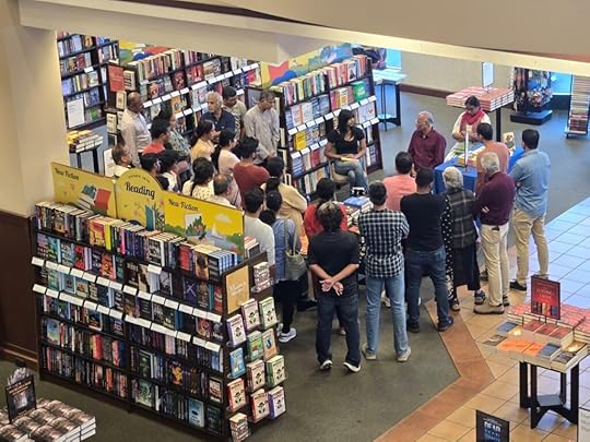 மறுநாள் காலை 10 மணிக்கு சான் மட்டையோ Barnes & Noble புத்தகக் கடையில் இருந்த நிகழ்வில் மீண்டும் சந்திப்பு. அந்நிகழ்வு நிறைவாக, நெகிழ்வாக இருந்தது. இவ்வளவு பேர் வருவார்கள் என்று நாங்கள் நினைக்கவில்லை. குறிப்பாக புதியவர்கள் சிலர் வந்திருந்தது சந்தோஷமாக இருந்தது. இதில் நான் தனிப்பட்ட முறையில் நான் கொள்வது, என் மகன் உங்களிடம் கேட்ட கேள்விகளும் அதற்கு உங்கள் பதிலும். அன்று அவன் கேட்ட கேள்வி அவனைப் புதிதாக அறிய வைத்தது. கேள்விக்கு உங்கள் பதிலும் (“Dream in language. Become a writer.”), எனது நல்லூழ் என்றே ஏற்கிறேன். அவன் ஒருவித பரவசத்தோடு வீட்டில் சுற்றியதாக பிறகு அறிந்தேன். அதிகம் பேச நேரமில்லாமல் நான் மதியம் Folsom வந்துவிட்டேன். அங்கும் மாலையில் உங்களுடன் இருந்த சில மணி நேரம், அற்புதம் (உ. வே. சா குறித்த உரையாடல் நெகிழ்வாக இருந்தது). வீடு திரும்பும் பொழுது காரில் பத்மநாபா, ஸ்ரீ மற்றும் அவரது சகோதரர், குகன் மற்றும் சிந்து ஆகியோருடன் உங்கள் எழுத்துக்களைப் பற்றியும், இலக்கியமும், இன்ன பிற விஷயங்களையும் பேசிக்கொண்டே திரும்பினோம். முற்றிலும் மகிழ்வான நாள்.