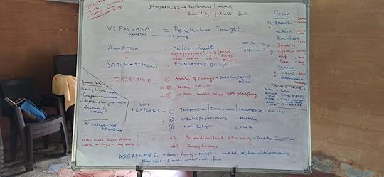 எப்படியோ அடித்துப்பிடித்துத்தான் விபாசனா வகுப்பிற்கு பயணித்தேன். வெள்ளிமலையேறியதும், என்னை வரவேற்றது மலை முழுதும் பூத்துக்கிடந்த அதேசெவ்வூதா தொட்டாசிணுங்கி மலர்கள் தான். என் வீட்டு மலர் இறைஞ்சி இருக்கிறது போலும், ஒராயிரம் மலர் சுமந்த அந்த மலை தேவதையிடம் இவளுக்காய் வகுப்பொன்றைத் தந்துவிடு என்று