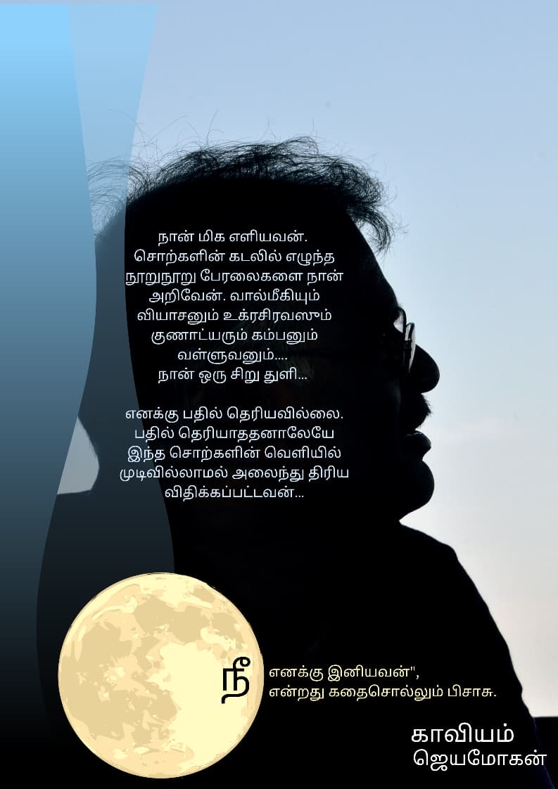அப்போது அதைப்பார்த்தது ஒரு பதற்றத்தையும் கொந்தளிப்பையும் தான் உருவாக்கியது. அதிலிருந்து தப்ப விரும்புபவன் போல மேலே சென்று கணிப்பொறி முன் அமர்ந்தேன். எடை கொண்ட தலை விசைப்பலகை நோக்கி தாழ்ந்து நெற்றியால் விசைப்பலகையை முட்டிக்கொண்டேன். பதினைந்து நிமிடம் கண்களை மூடி ஓய்வெடுத்தபோது மீண்டும் தட்டச்சு செய்ய முடிந்தது. என்ன அடித்தேன் என்றே நினைவில்லை. நிமிர்ந்தபோது என் அருகே கானபூதி தன் கனிந்த கண்களுடன் அமர்ந்திருந்தது. ஆனால் இப்போது அது என் மொழியின் பிரமை என நன்கு அறிந்தும் இருந்தேன். நாவலை எழுதி முடித்தேன். கதைகளின் பேரரசனுக்கு கண்ணீருடன் வணக்கம் சொன்னேன். நீண்டநேரம் தன்னந்தனிமையில் கண்ணீர்விட்டுக்கொண்டிருந்தேன். சிதைந்துப் பரவியிருந்த அனைத்தும் இணைந்து ஒன்றாகி பிசிறற்ற ஒருமையை அடைந்தன. உலகமே முழுமையாகத் தெரிந்தது. என் வாட்ஸப்பில் கண்ணீருடன் உணர்ந்த அந்த முழுமையை பற்றி ஒரு நிலைத்தகவலை வைத்தேன். நண்பர்களின் வாழ்த்துக்கள் வந்துகொண்டிருந்தன. அஜிதன் ‘Hugs Appa’என ஒரு செய்தியை அனுப்பியிருந்தான். புன்னகையுடன் அவற்றைப் பார்த்துக்கொண்டிருந்தேன்.