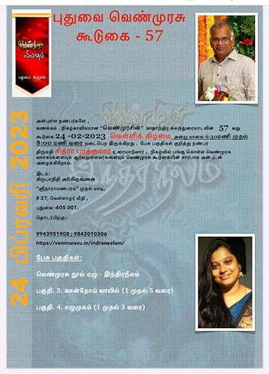 வணக்கம் , நிகழ்காவியமான “வெண்முரசின்” மாதாந்திர கலந்துரையாடலின் 57 வது கூடுகை 24 -02-2023 வெள்ளிக் கிழமை அன்று மாலை 6:30மணி முதல் 8:00 மணி வரை நடைபெற இருக்கிறது .