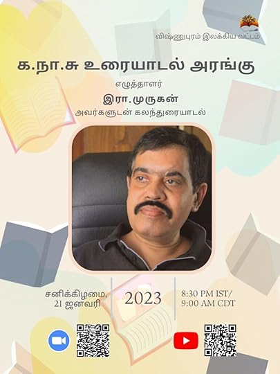 வணக்கம் ! க.நா.சு உரையாடல் அரங்கு இலக்கிய விவாத வரிசையில் எழுத்தாளர் இரா. முருகன் அவர்களை அழைத்து உரையாடவிருக்கிறோம். மூன்று விரல், ராமோஜியம் நாவல்கள் குறித்து நண்பர்களின் சிறிய உரைகளும், அதைத் தொடர்ந்து எழுத்தாளருடனான கேள்வி பதில் நேரமும் உண்டு. நண்பர்கள் கலந்துகொண்டு தங்கள் கருத்துக்களை , எண்ணங்களை முன்வைக்கலாம்.