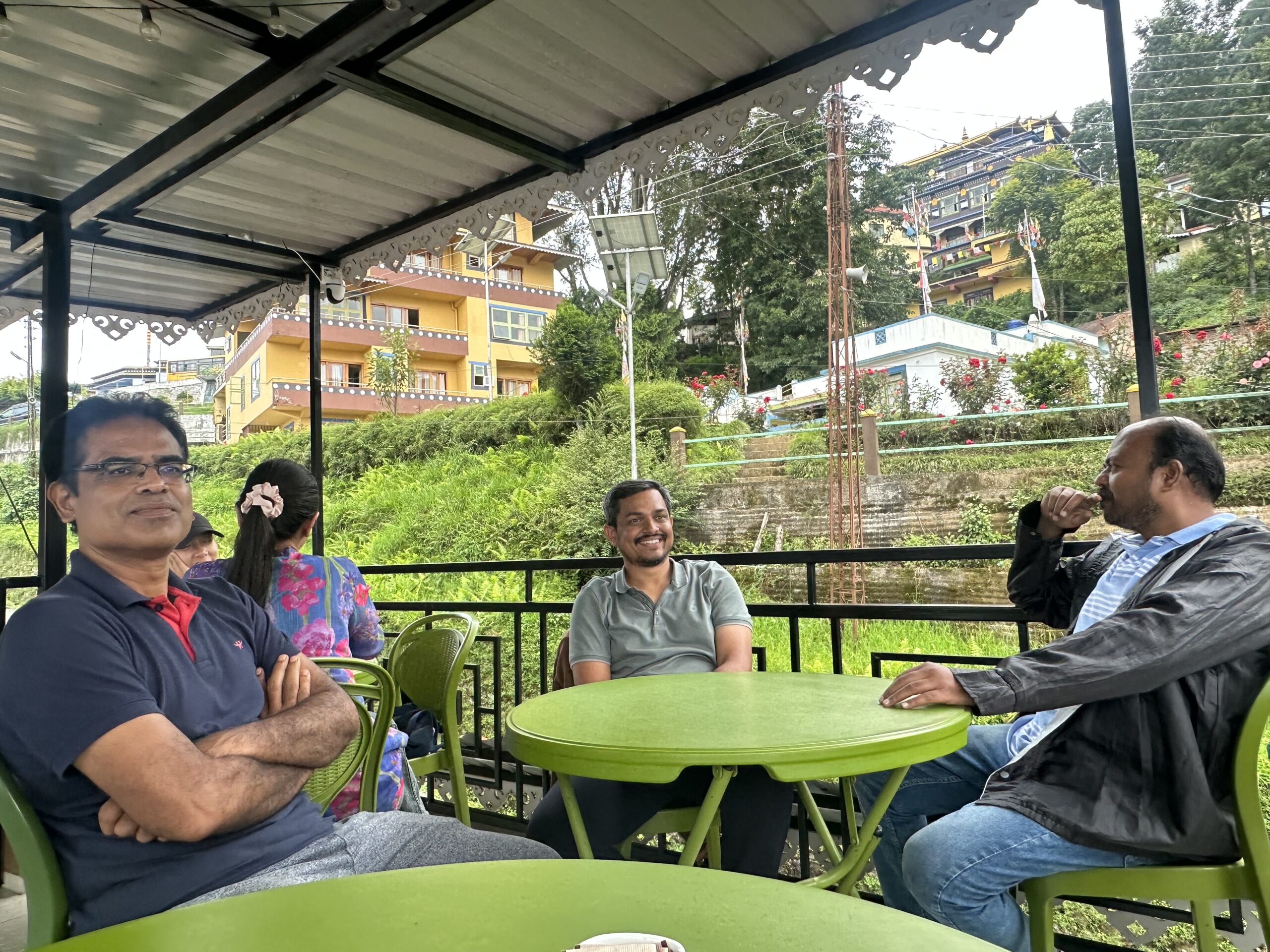 காலை உணவுக்குப் பின் சிக்கிம் நோக்கிச் செல்லத் தொடங்கினோம். டார்ஜிலிங் ஒவ்வாமையை உருவாக்கினாலும் பெய்துகொண்டே இருந்த மழை, குளிர், பசுமைபொலிந்த மலைச்சரிவுகளுக்கு அப்பால் வெள்ளிமலைமுடி ஆகியவற்றுடன் நண்பர்கள் ஒருவரை ஒருவர் கேலிசெய்து சிரித்துக்கொண்டும், கல்வி மற்றும் இலக்கியம் சார்ந்து இடைவிடாது விவாதித்துக்கொண்டும் சென்றது உளம்நிறையச் செய்யும் அனுபவமாக அமைந்தது.