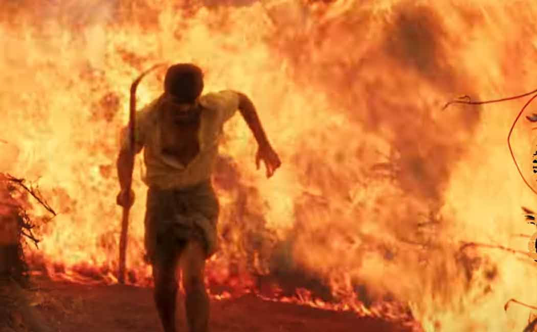 “இங்க மண்ணிலயும் கல்லிலயும் தீ நிறைஞ்சிருக்கு. வானத்திலே இருந்து தீ மழை விளுது. இந்த செடியெல்லாம் ஒரு சின்ன சத்தியத்துக்க பிடிப்பிலேயாக்கும் தீப்பிடிக்காம நின்னுட்டிருக்கு” என்று சாத்தூரான் சொல்வார்.