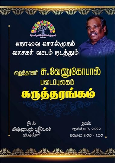 நமது சொல்முகம் வாசகர் குழுமத்தின் முதல் இலக்கிய கருத்தரங்கு வரும் ஞாயிறு அன்று கோவையில் நிகழவுள்ளது. அதில் எழுத்தாளர் திரு. சு. வேணுகோபால் அவர்களின் முன்னிலையில் அவரது படைப்புகள் மீதான வாசிப்பனுபவங்கள் முன்வைக்கப்படும். இலக்கிய ஆர்வமுள்ள நண்பர்கள் அனைவரையும் இந்நிகழ்விற்கு வரவேற்கிறோம்.