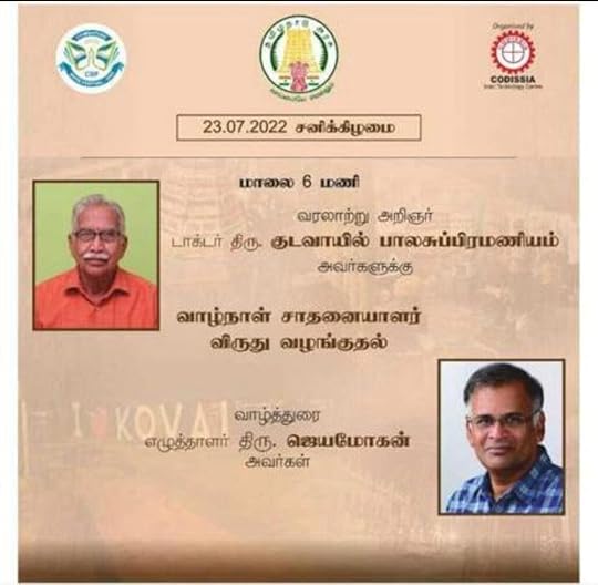 23- ஜூலை-2022 அன்று நிகழும் வாழ்நாள் சாதனையாளர் விருது வழங்கும் விழாவில் நான் பேசுகிறேன்.