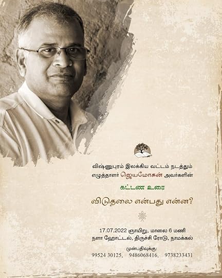 நாமக்கல் நகரில் ஒரு கட்டண உரை ஆற்றுகிறேன். நாமக்கல் விஷ்ணுபுரம் நண்பர்கள் முன்னரே அதைக் கோரினர். ஆனால் அப்போது வசதிப்படாமல் உரை திருப்பூரில் நடத்தப்பட்டது.