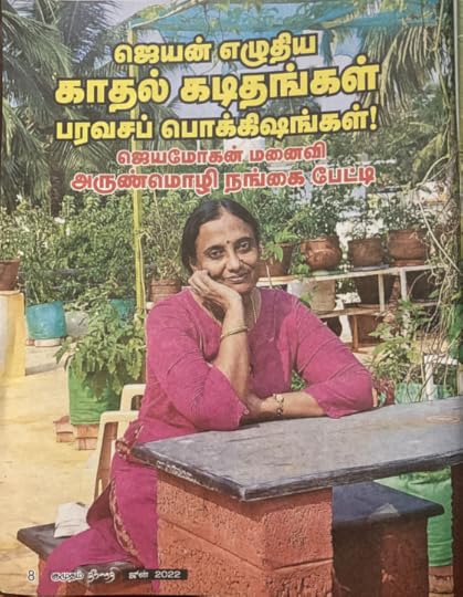 அருண்மொழியை நான் காதலித்த நாட்களில் அவள் எழுதிக்கொண்டிருந்தாள். ஒரு நோட்டு நிறைய சங்கப்பாடல்களின் அதே மொழியில், திணை துறை பகுப்புடன், அகப்பாடல்கள் எழுதி வைத்திருந்தாள். ரசனைக் கட்டுரைகள் சில எழுதியிருந்தாள். நான் அவளிடம் தொடர்ந்து எழுதும்படிச் சொன்னேன். (காளை மாட்டை அடக்கினால்தான் திருமணம் செய்து கொள்வேன் என கவிதை எழுதிவிட்டு பசுமாட்டை பிடித்து கட்டத்தெரியாதவனை ஏன் கட்டினாய் என்று கேலியும் செய்தேன்) .திருமணமான நாட்களில் அவள் கொஞ்சம் எழுதினாள். ஆனால் வாசிக்க வாசிக்க எழுத்து ஆர்வம் குறைந்தது. வாசிப்பின் வெறியே அவளை அந்நாட்களில் நிறைத்திருந்தது.