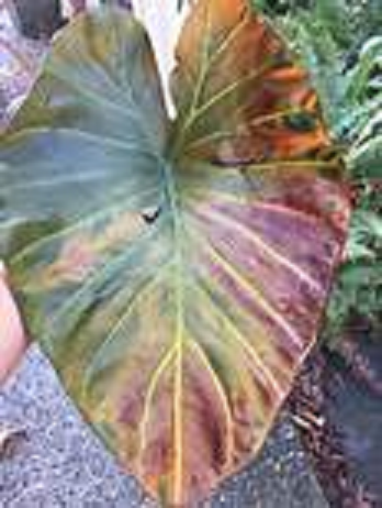 மலைச்சேம்பின் அசையும் வளைந்த இலைகளை