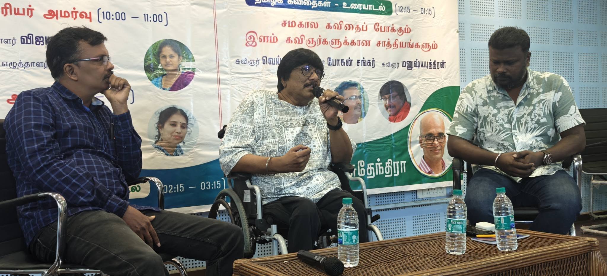 சென்ற 8- ஜூன் 2025 அன்று குமரகுருபரன் – விஷ்ணுபுரம் விருது விழாவில் நிகழ்ந்த ஓர் உரையாடலில் வெய்யில், போகன் சங்கர், மனுஷ்யபுத்திரன் ஆகியோரிடையே ஒரு விவாதம் இயல்பாக உருவாகி வந்தது. ‘இளம் கவிஞர்கள் இதுவரையிலான கவிதைமரபையும் அது சார்ந்த கருத்துக்களையும் கல்விநீக்கம் (unlearn) செய்யவேண்டும்’ என்று வெய்யில் சொன்னதை ஒட்டி மனுஷ்யபுத்திரனும் போகனும் தங்கள் மறுப்பைத் தெரிவித்தனர்.