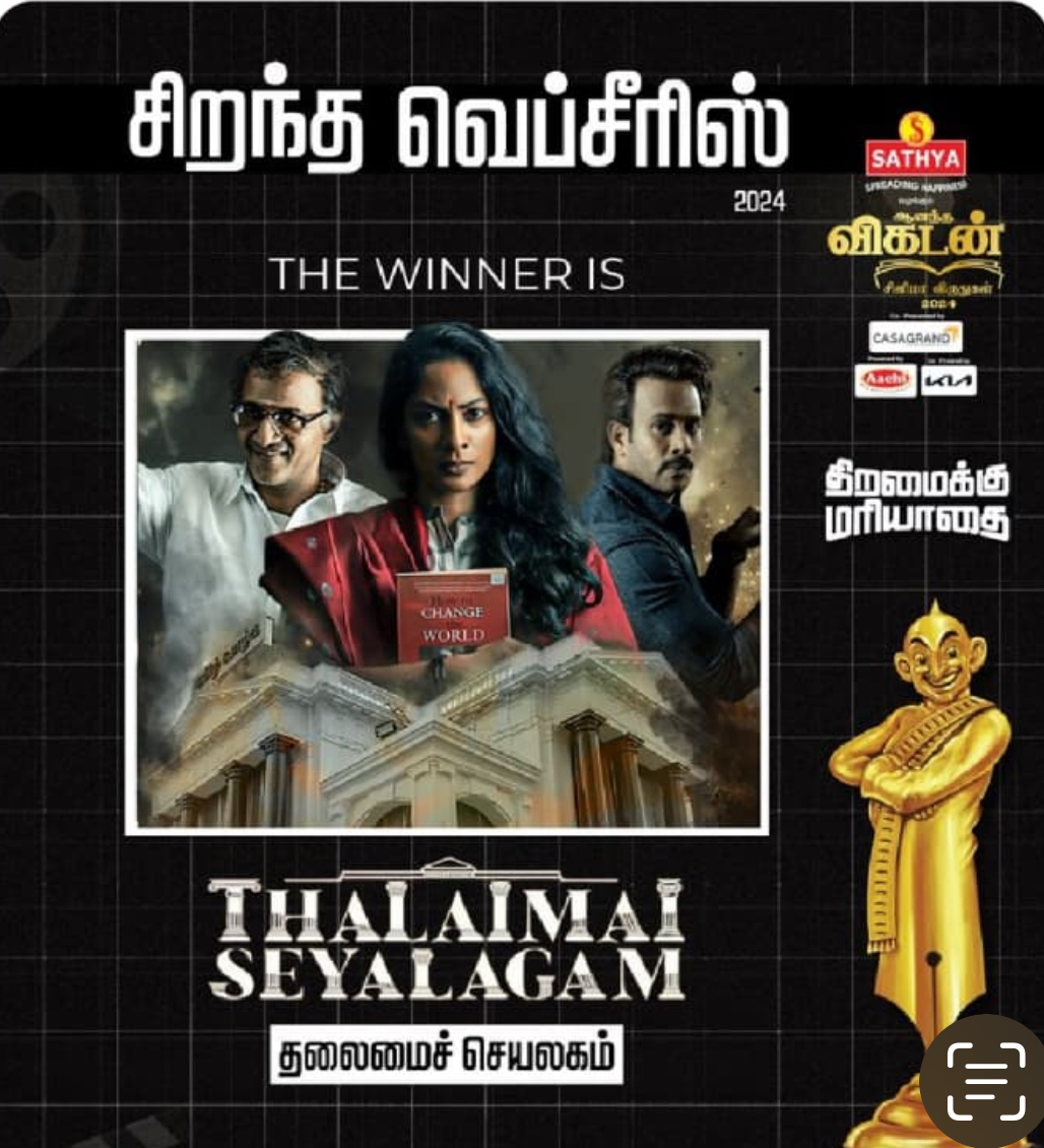 வசந்தபாலன் இயக்கத்தில் வெளிவந்த தலைமைச்செயலகம் வலைத்தொடர் சிறந்த வலைத்தொடருக்கான விகடன் விருதை பெற்றுள்ளது. வசந்தபாலனுக்கு வாழ்த்துக்கள்