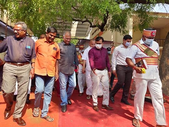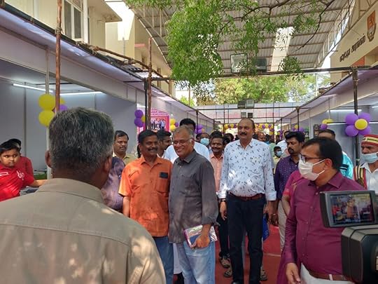 விழா நடக்கும் அரங்குக்கு மாலை மூன்று மணிக்குச் சென்றேன். மாவட்ட ஆட்சியர் அமர் குஷ்பகா கல்லூரி முதல்வர் மரிய அந்தோனி ஆகியோர் வாசலில் மலர் அளித்து வரவேற்றனர். விழா அரங்கை ரிப்பன் வெட்டி திறந்துவைத்தேன். உள்ளே அரங்குகளை ஒருமுறை பார்த்துவிட்டு விழாக்கூடத்திற்குச் சென்றேன்.