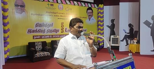 கி.பார்த்திபராஜாகுக்கூ நண்பர்கள் உட்பட என்னுடைய வாசகர்கள் நண்பர்கள் பலர் வந்திருந்தனர். அரங்கு நிறைந்திருந்தது. ஜோலார் பேட்டை சட்டமன்ற உறுப்பினர் க.தேவராஜு , ஆம்பூர் சட்டமன்ற உறுப்பினர் ஏ.சி.விஸ்வநாதன், திருப்பத்தூர் சட்டமன்ற ஏ.நல்லதம்பி, நகரச்செயலார் ராஜேந்திரன், மாவட்ட ஊராட்சிமன்றத் தலைவர் அ.சூரியகுமார் என திருப்பத்தூர் மாவட்ட மக்கள்பிரதிநிதிகள் அனைவருமே அரங்கில் இருந்தனர். அவர்கள் மிகச்சுருக்கமாக வாழ்த்துரை வழங்கினர். மாவட்ட ஆட்சியர் பேசியபின் நான் அரைமணிநேரம் பேசினேன்.