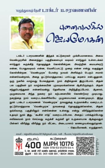 இந்த நூல் டாக்டர். ப. சரவணன் ‘ வெண்முரசு ’ நாவலுக்கு உருவாக்கிய வரைபடம். ஒட்டுமொத்தமாக ‘ வெண்முரசு ’ நாவலைத் தொகுத்துக் கொள்ள , அதன் ஒவ்வொரு பகுதியிலும் என்னென்ன உள்ளது என்று விரித்துக்கொள்ள உதவும் நூல் இது. ‘ கூகிள் எர்த் ’ வரைபடம்போல. அதைப் பார்க்கும்போது சலிக்காமல் நாம் செய்வது சுருக்கி சுருக்கி ஓர் உருளையாக ஆக்குவதும் பின்னர் விரித்து விரித்து நம் வீட்டை அடையாளம் காணமுயல்வதும்தான். – ஜெயமோகன் , எழுத்தாளர்.