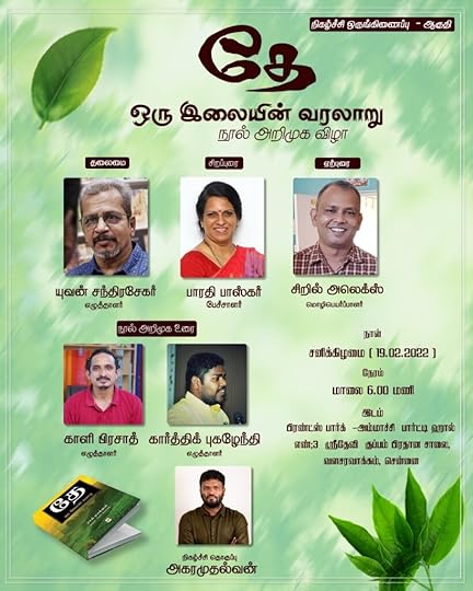 பல்துறைகளைச் சார்ந்த, நுண்தகவல்களுடன் எழுதப்பட்டிருக்கும் தே – ஒரு இலையின் வரலாற்றை தமிழ் வாசகர்களுக்கு சற்றுப் பிந்தியேனும் தர முடிந்ததில் பெரும் மகிழ்ச்சி கொள்கிறேன்.