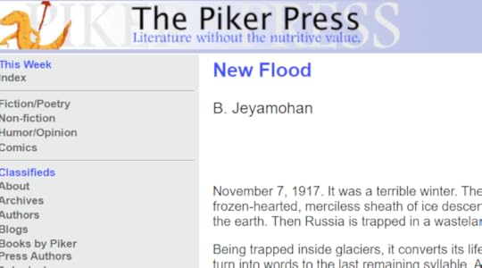 பின் தொடரும் நிழலின் குரல் நாவலில் ஜான் ரீட் ருஷ்யப்புரட்சியை நேரில் காணும் தருணத்தை புனைந்து எழுதப்பட்ட தனிக்கதை (ஜான் ரீட் சொல்வதுபோல) புதுவெள்ளம். அது ஜெகதீஷ் குமார் மொழியாக்கத்தில் ஆங்கில இலக்கிய இதழான The Piker Press இதழில் வெளியாகியிருக்கிறது