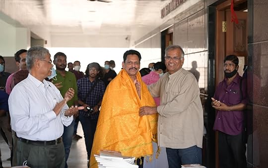 தெலுங்கு கவிஞர் சின்னவீரபத்ருடு அவர்களின் அமர்வு மிகச்சிறப்பானது தெலுங்கில் நல்ல நவீன கவிதைகளே இல்லை என்றே நான் கேள்விப்பட்டிருந்தேன் அந்த பார்வையை முற்றிலுமாக மாற்றினார் , பேராசிரியருக்குரிய குரல் , சங்கபாடல்கள் திருக்குறள் , கன்னடத்தில் சர்வக்ஞரின் வசனங்கள், சீன கவிதைகள் என அவர் பேசியது எல்லாமே பெரிய ஆச்சர்யங்களாக விரிந்தன , அமர்விலும் , விருதுவிழாவின் போதும் இத்தகைய இலக்கிய விழாவை கண்டதில்லை என்றும் , இத்தனை இளைஞர்கள் ஒரு இலக்கிய விழாவில் கலந்துகொள்வது தெலுங்கு சூழலில் அறிதென்றும் , இலக்கியம் அங்கே ஓய்வுபெற்றவர்களுக்கானது இருப்பதாகவும் சொன்னார் … அவருக்கு மரியாதை செய்து அன்பளிப்பாக கொடுக்கப்பட்ட புத்தகங்களை குழந்தைக்குரிய ஆர்வத்தோடு பார்த்துக்கொண்டிருந்தார்.