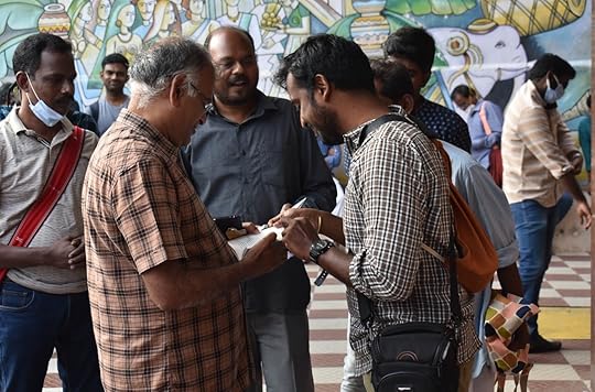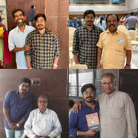 உங்களிடமும், சுனில், நாஞ்சில்நாடன் சார் ஆகியோரிடம் புத்தகத்தில் கையெழுத்து பெற்றுக்கொண்டேன். நீங்கள் கையெழுத்துப் போடும்போது பேரைக் கேட்டு என்னை ஞாபகமாய் சொன்னது எனக்கு மிகவும் மகிழ்ச்சியாய் இருந்தது. உங்களோடு என்னை ஒரு போட்டோ அன்பரசி எடுத்தது. எனக்கு மிகவும் பிடித்த போட்டோவாய் அமைந்தது. கொண்டு வந்திருந்த எல்லா பணத்துக்கும் புத்தகம் வாங்கிவிட்டேன்.
