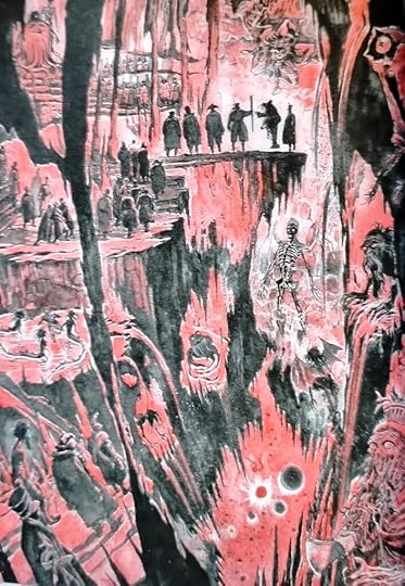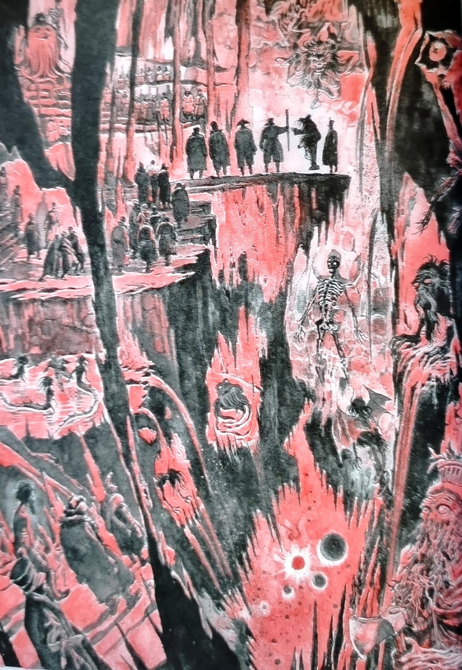 ஓவியர் பாஸ்குவாலே இத்தகு களங்களுக்கே உரித்தான வகையில், துர் கனவு போலும் சாயலில், ஜப்பானிய நீர் வண்ண ஓவியங்களின் முறையில் நாவலுக்கான ஓவியங்களை தீட்டி இருக்கிறார். கருப்பு வெள்ளையில், பகலா இரவா என்று சூழல் மயங்கிய பனி வெளியின் தசையை எரிக்கும் உறைகுளிர் நிலையை ஒவ்வொரு ஓவியம் வழியாகவும் மனம் அந்த சில்லிப்பை உணரும் வண்ணம் அவற்றை தீட்டி இருக்கிறார். மெல்லிய வெண்மை விரவிய கரிய பின்புலம். காட்சி பின்னே பின்னே போக, அது உறைந்து போன பிணம் ஒன்றின் விழி. அழுகிய குதிரை சடலத்துக்குள் அதையே உணவாகவும், குளிருக்கு காப்பாகவும் கொண்டு அதற்கும் புதைந்து கிடந்த ஒருவனை (கொசாக்) வெளியே இழுத்து போட்டு சுட்டேன் என்று சொன்னபடி அறிமுகம் ஆகும் கேப்டன். முற்றிலும் அமானுஷ்ய சித்தரிப்பின் உச்சமாக தீட்டப்பட்ட நரக குழி என்று கனவிலும் வந்து துரத்தும் ஹாண்டிங் ஆன சில படிமங்கள் கொண்ட நாவல். கேப்டன், படை வீரனான எழுத்தாளர் எல்லோரும் சாத்தான்கள் வசம் எங்கே தோற்று போகிறார்கள் என்பதை சொல்லாமல் சொல்லி விடுகிறது நாவல். தனது ஆன்மாவை சாத்தான்கள் திருடிவிடாது இருக்கத்தானே அந்த பாதிரியார் தற்கொலை செய்துகொண்டிருப்பார்?