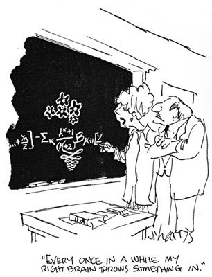 ”அதுவா? ஆராய்ச்சி நடுவிலே என்னோட வலதுமூளையும் அப்பப்ப முழிச்சுகிட்டு செயல்பட்டுடும்”