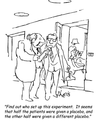”இந்த ஆராய்ச்சியோட அடிப்படையே புரியலை. பாதிப்பேருக்கு வெறுந்தண்ணியை மருந்தா குடுத்திருக்காங்க. மிச்சபாதிபேருக்கு வேறமாதிரி வெறுந்தண்ணியை மருந்தாக்குடுத்து ரிசல்டை ஒப்பிட்டுப் பாத்திருக்காங்க”